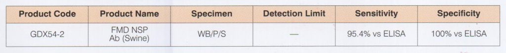 Linkseas Livestock Animals Rapid Tests FMD NSP Ab Herdscreen® FDM NSP Ab 是一項用於檢測牛,綿羊,山羊和豬全血,血漿和血清中NSF 3 ABC抗體的測試,以幫助診斷口蹄疫。 FMD 3ABC NSP Ab ELISA Kit Herdscreen® FDM NSP Ab 是一項酶聯免疫吸附試驗,用於檢測牛全血,血漿和血清中的NSP 3 ABC抗體,以幫助診斷手足口病。 FMD NSP Ab (Swine) Herdscreen® FDM NSP Ab 是一項用於檢測豬全血,血漿和血清中NSP 3 ABC抗體的試驗,可用於診斷口蹄疫。 Bovine TB Ab Herdscreen® Bovine TB Ab 是一項檢測牛全血,血漿和血清中TB抗體的測試,可幫助診斷結核病。 Bovine Brucella/TB Combo Bovine Brucella/TB Combo 是在牛全血,血漿和血清中抗流產雙歧桿菌和melitensis的抗體以及牛分枝桿菌的抗體的組合測試或檢測。 Brucellosis Ab (Caprine) Herdscreen® Brucellosis Ab (Caprine) 是一種用於檢測山羊全血,血漿和血清中抗B流產和B Melitensis抗體的測試。 Brucellosis Ab (Ovine) Herdscreen® Brucellosis Ab (Ovine) 是一種用於檢測綿羊全血,血漿和血清中抗B流產抗體和B Melitensis抗體的測試。 Brucellosis Ab (Swine) Herdscreen® Brucellosis Ab (Swine) 是一項用於檢測豬全血,血漿和血清中的抗流產抗體和肉毒桿菌抗體以及豬鏈球菌抗體的測試。 Brucellosis Ab (Bovine) Herdscreen® Brucellosis Ab (Bovine) 是一種用於檢測牛全血,血漿和血清中抗B流產抗體和B Melitensis抗體的測試。 Bovin Anaplasma Ab Herdscreen® Bovin Anaplasma Ab 是一種用於檢測牛全血,血漿和血清中抗血漿抗體的抗體的測試。 Rabies Ag (Bovine) Herdscreen® Rabies Ag (Bovine) 是一項用於檢測唾液和腦勻漿中狂犬病抗原的測試。 Anthrax Ag Herdscreen® Anthrax Ag 是一種用於檢測全血,血漿和血清中炭疽抗原的測試。 Bovine Brucella/TB/FMD Combo Herdscreen® Bovine Brucella/TB/FMD Combo 是一種用於檢測全血,血漿和血清中抗牛布魯氏菌,結核病和口蹄疫的抗體的多參數測試。 Bovine Rota Ag Herdscreen® Bovine Rota Ag 是一種檢測糞便中輪狀病毒抗原的測試。